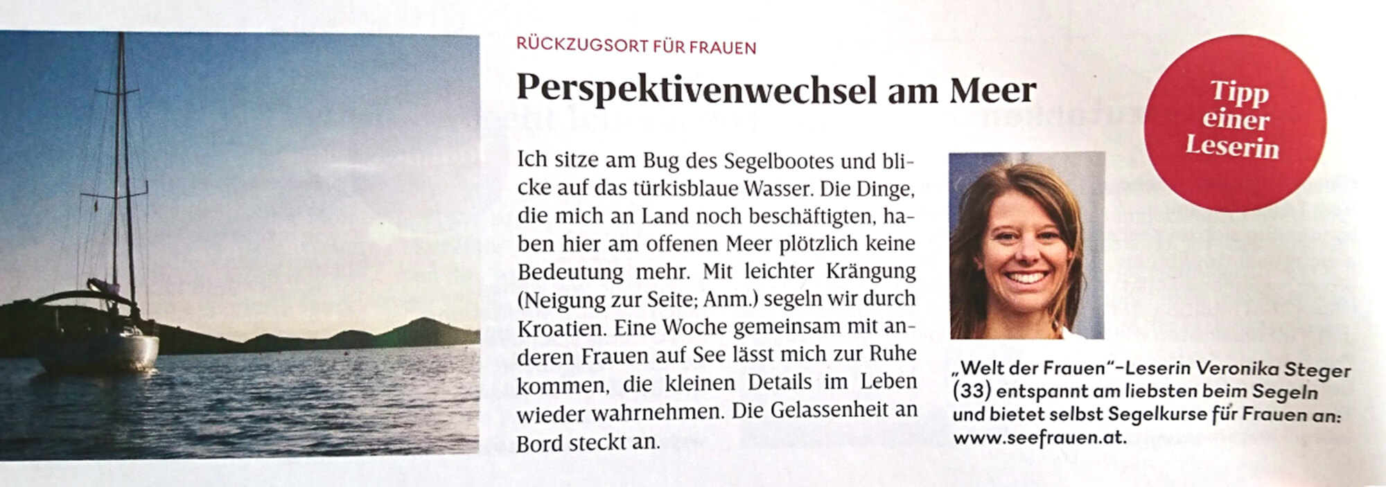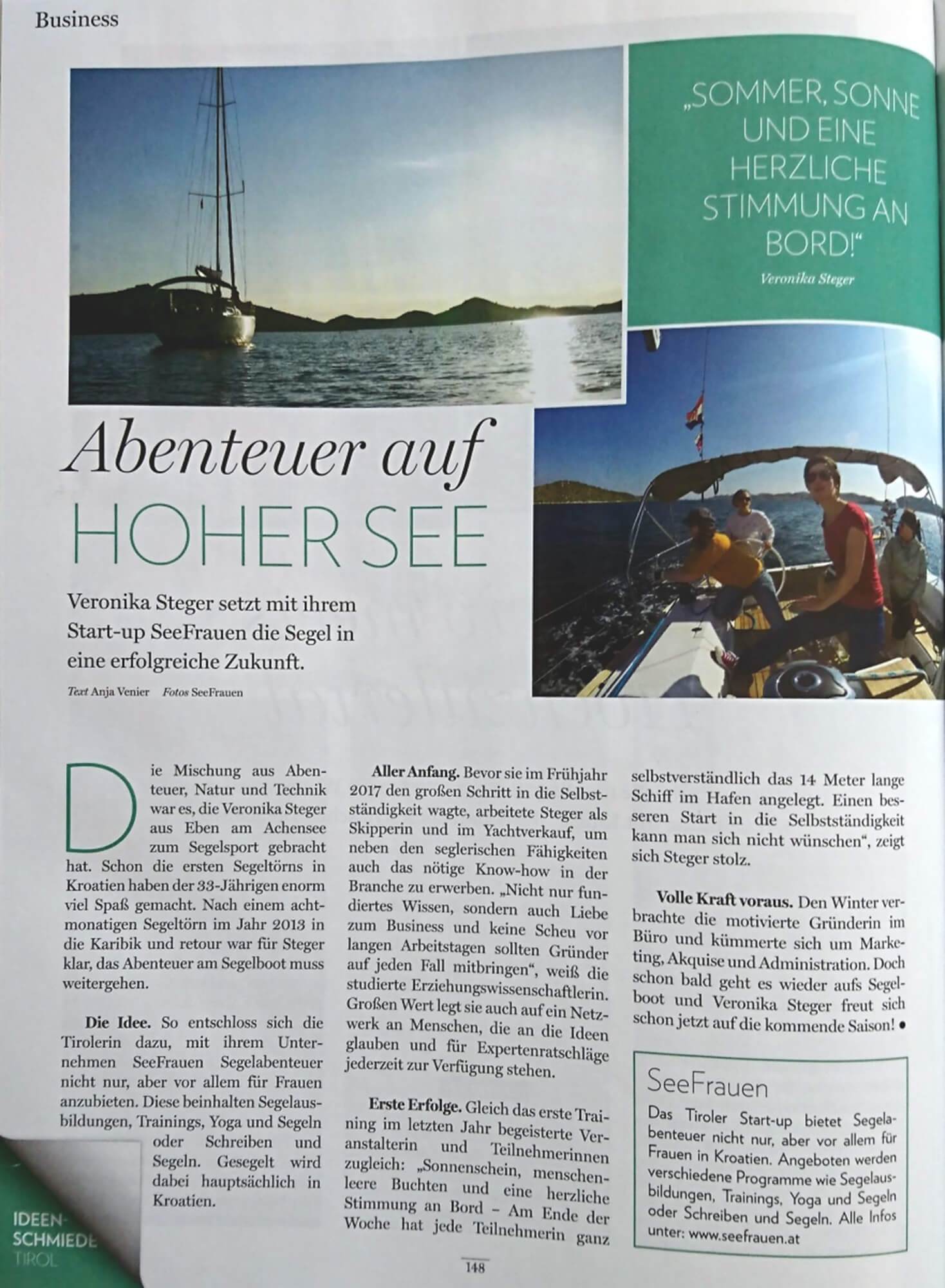 „Abenteuer auf hoher See“ SeeFrauen wird als Start-up des Monats im Magazin Tirolerin präsentiert. März 2018